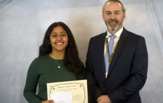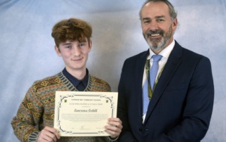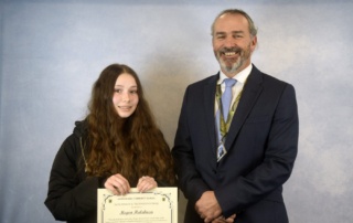 Presentations to the Head Boy and Head Girl – presented to Tarik Kirgin and Madeline Cox.